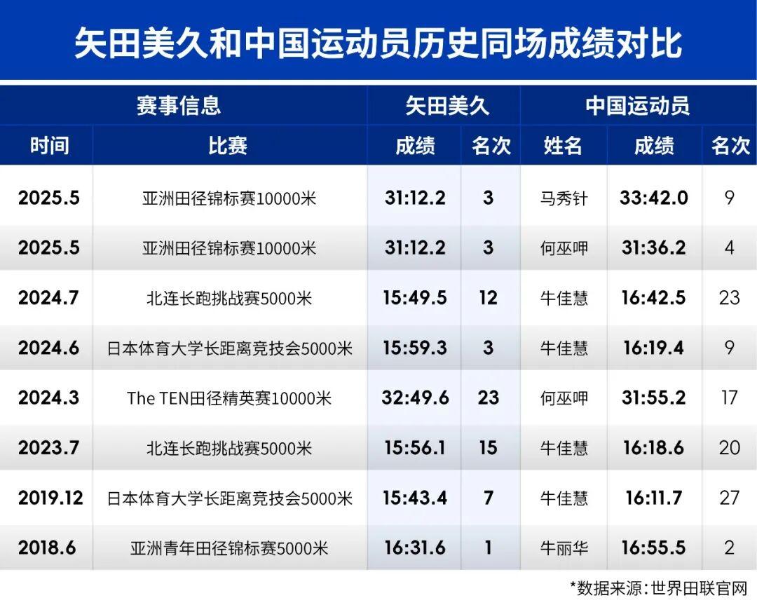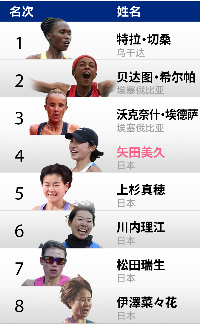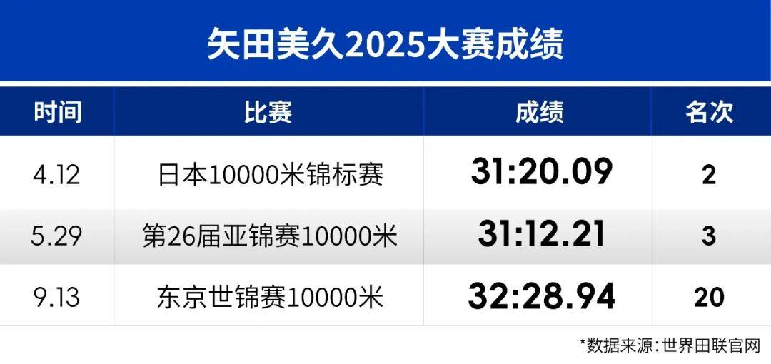 去年东京,矢田美久代表日本,获得了参加世锦赛万米比赛的一席之位。不过,在高温中跑出32:28.94的她仅仅获得赛事第20名。这个成绩距离她的万米PB有1分多的差距。